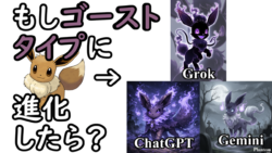 ChatGPT、Gemini、Grokにまだいないタイプのイーブイの進化系のビジュアルと名前を考えてもらいました。ChatGPTノーマルタイプの進化系だけ頑なに生成してくれませんでした。なんでやねん・・・GeminiノーマルタイプGrokノ...