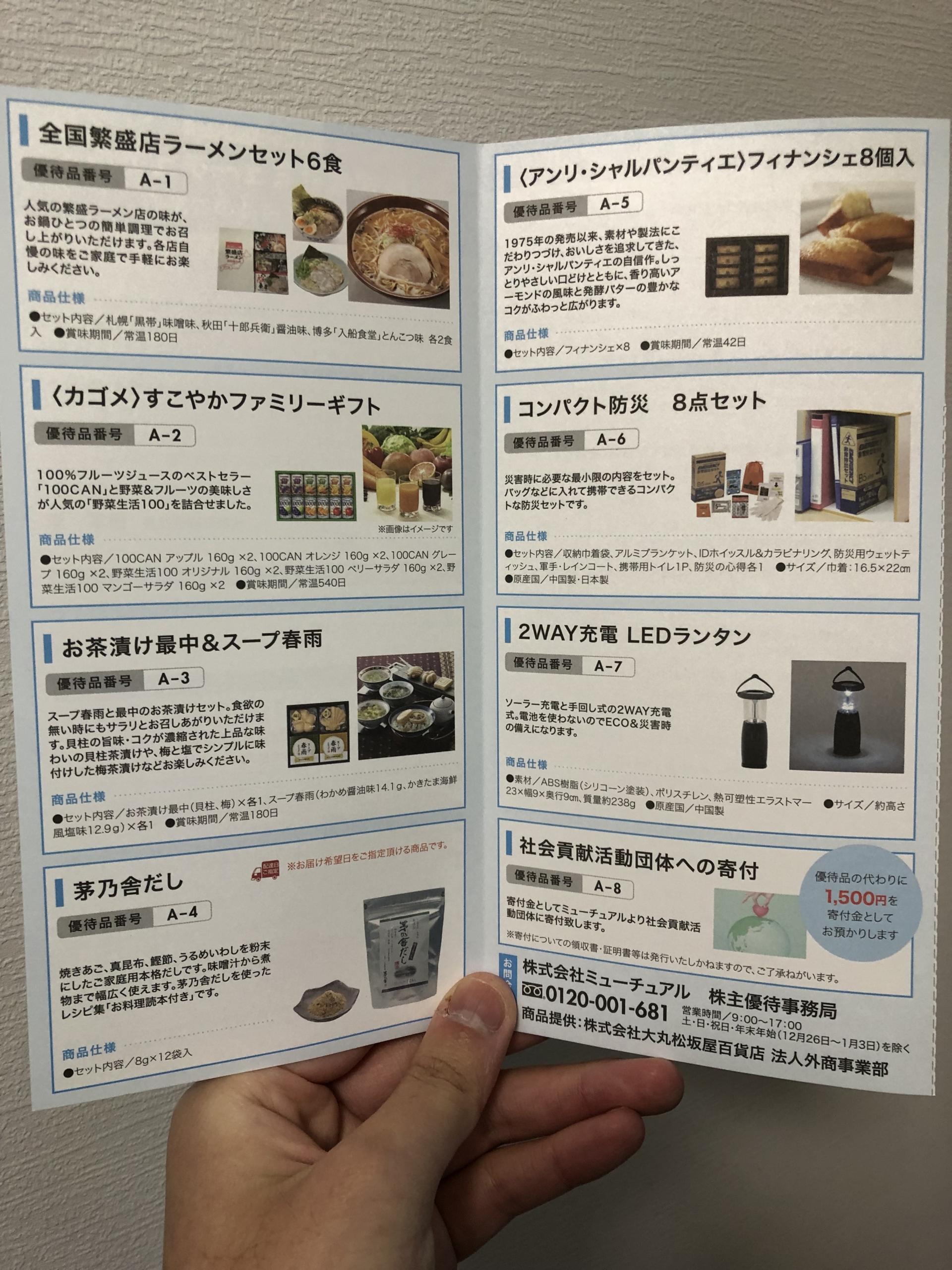 この優待は画像のカタログの中から好きな商品を1つ選んでもらえるというものです。