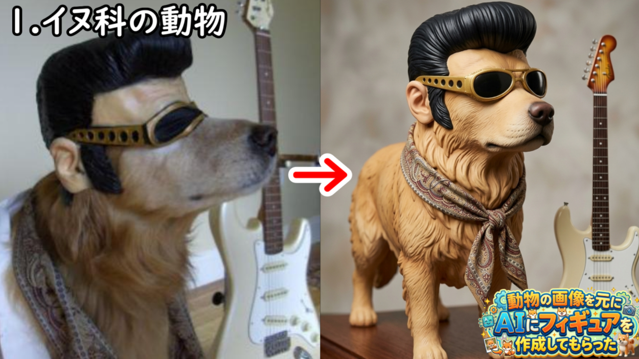 動物の画像を元にAIにフィギュアを作成してもらった 生成AI(イラスト・歌・BGM) X Facebook はてブ LINE Pinterest コピー 2026.04.02 動物の画像を元にAIにフィギュアを作成してもらいました。 一応ChatGPT・Gemini・Grokにやってもらったんですが、ChatGPTは画像そのまんまでフィギュア感がない、Grokは元画像から逸脱してしまったので、フィギュア化はGeminiが一番上手でした。 目次 イヌ科の動物ネコ科の動物鳥類その他の動物 イヌ科の動物 ネコ科の動物 鳥類 その他の動物