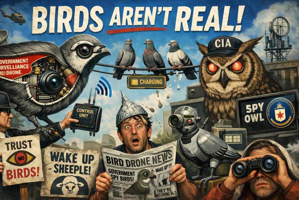 鳥が電線にとまるのは充電のため、ハトのフンは液体型GPSトラッカーなど、もっともらしい根拠を展開しています。天才か?🤣