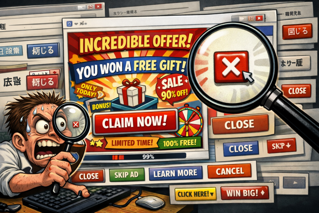 ネットのアホみたいに閉じるボタンが小さい広告