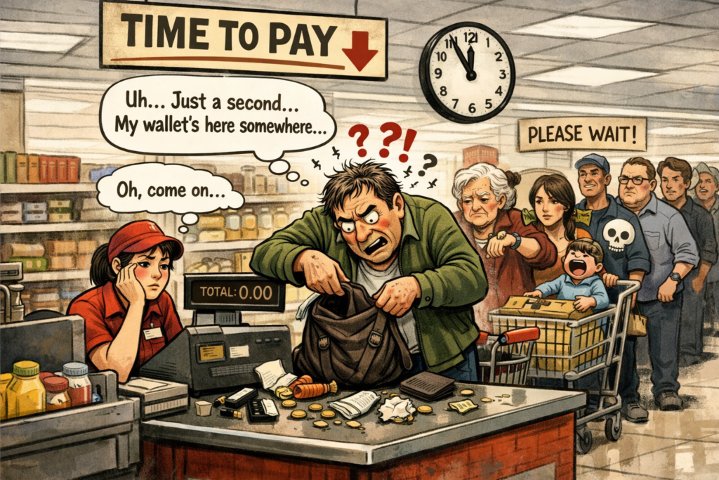 お会計直前に財布探し始めるマン