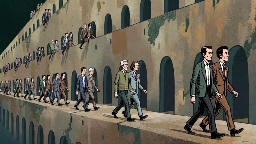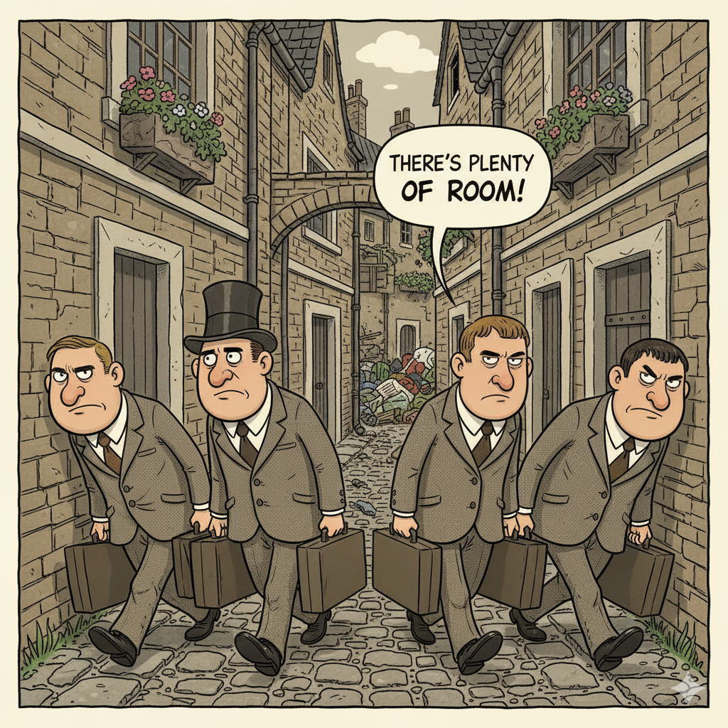 狭い通路でも絶対横並びマン