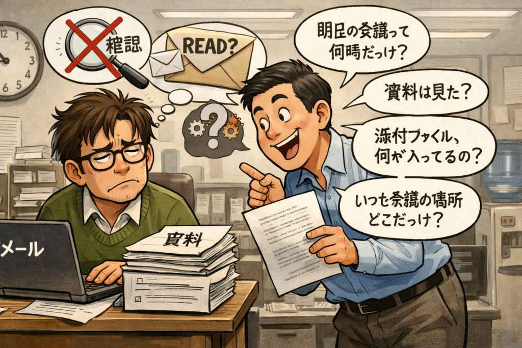 メールや資料に書いてあること質問してくるマン