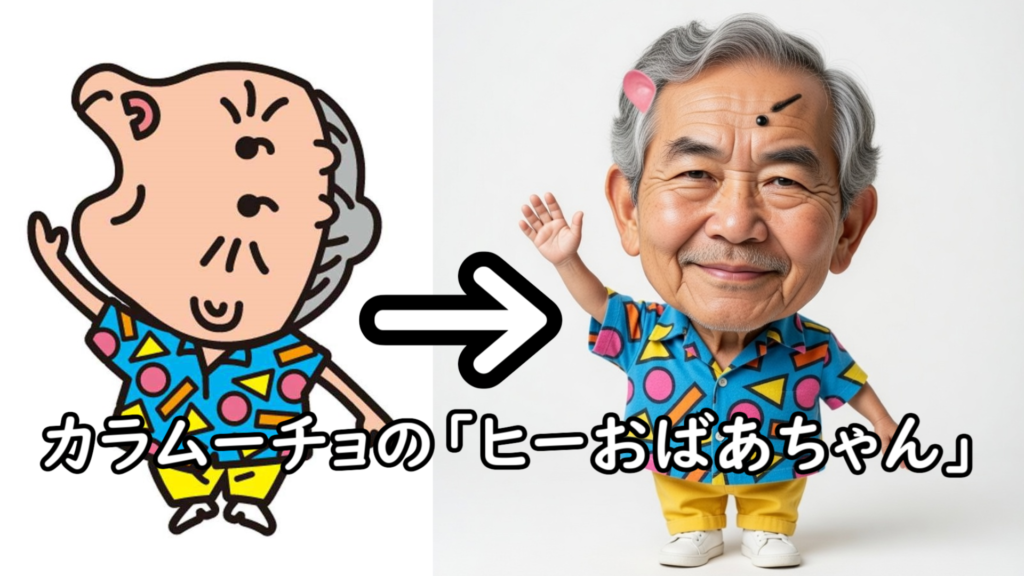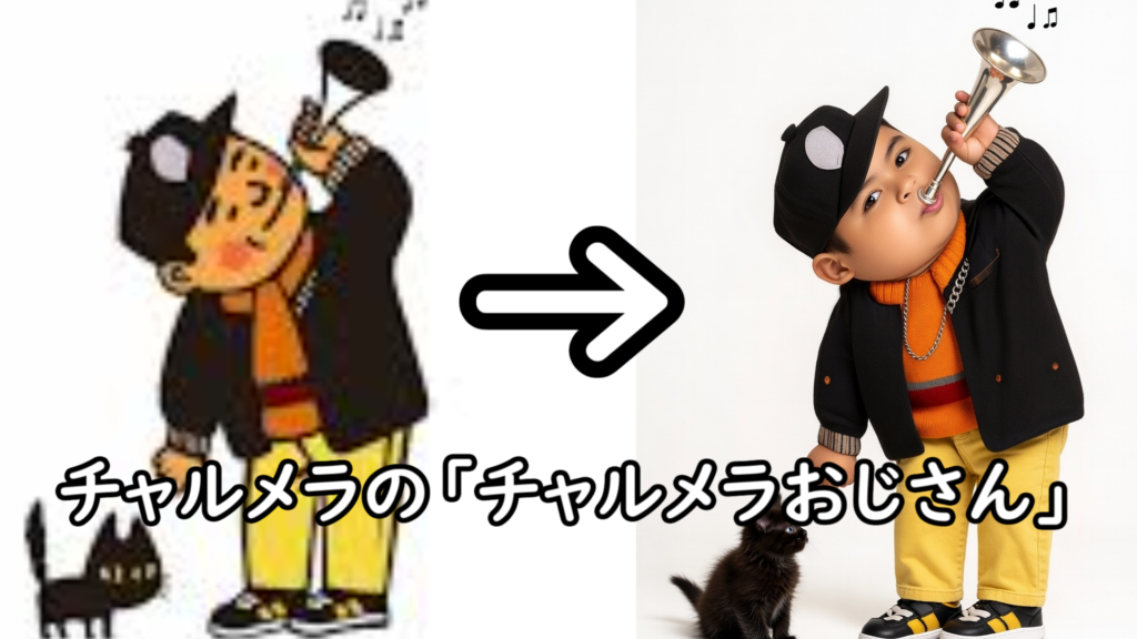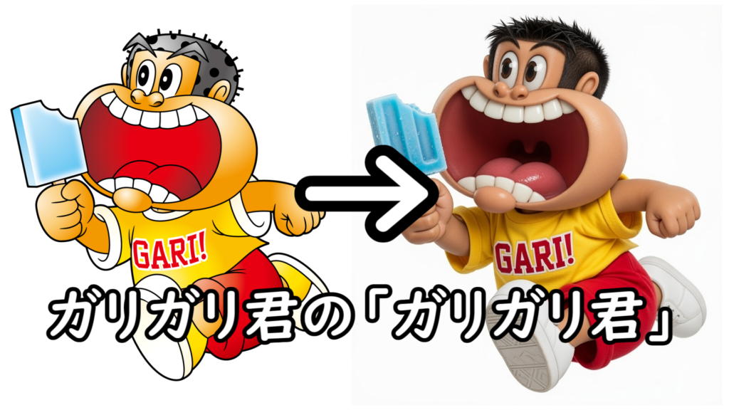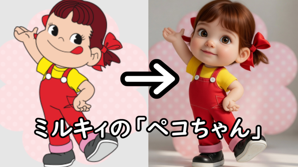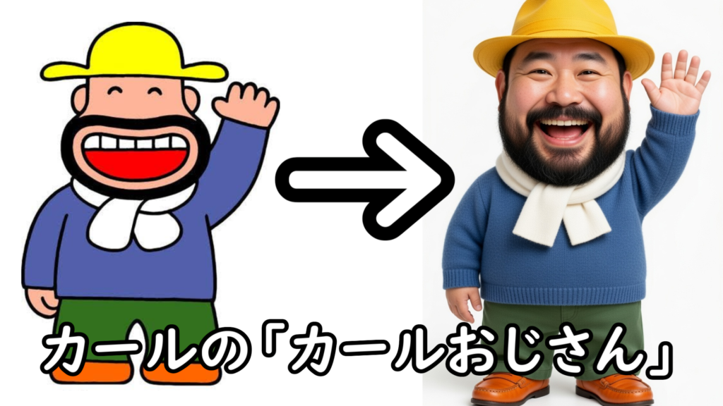 有名なキャラをAIに実写化してもらった 生成AI(イラスト・歌・BGM) X Facebook はてブ LINE Pinterest コピー 2026.02.25 カールおじさん等の有名なキャラをAIに実写化してもらいました。 ChatGPT・Gemini・Grokに画像を生成してもらったんですが、Grokが一番良い感じでした。ChatGPTはクオリティが微妙、Geminiはぬいぐるみっぽい感じでした。 目次 カールおじさん小梅ちゃんキョロちゃんひよこちゃんQooちゃんドンペンヒーおばあちゃんペコちゃんうまえもんチャルメラおじさんガリガリ君出前坊やとと丸 カールおじさん 小梅ちゃん キョロちゃん ひよこちゃん Qooちゃん ドンペン ヒーおばあちゃん ペコちゃん うまえもん チャルメラおじさん ガリガリ君 出前坊や とと丸