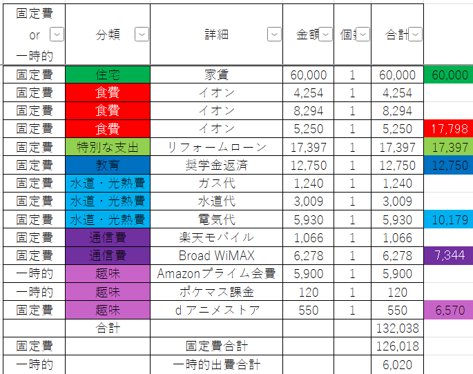 | 2025年8月分出費合計 | 13万2038円 |