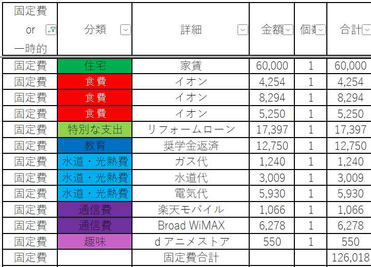 固定費だけをまとめると以下の通りになります。