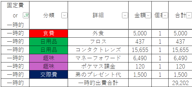 一時的出費だけをまとめると以下の通りになります。
