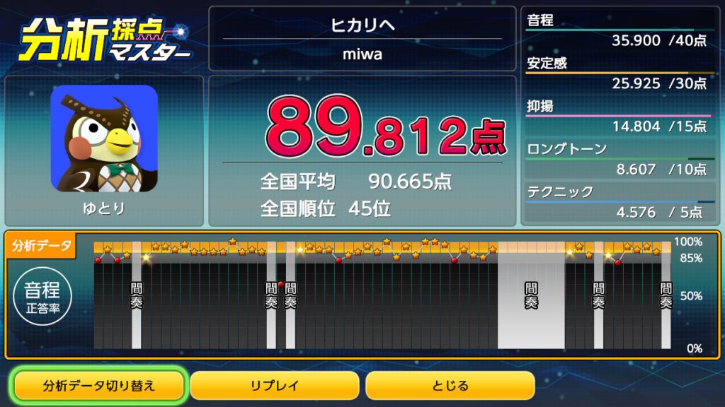 今回、任天堂switchのJOYSOUNDカラオケで採点してみたのは、miwaの「ヒカリへ」です。