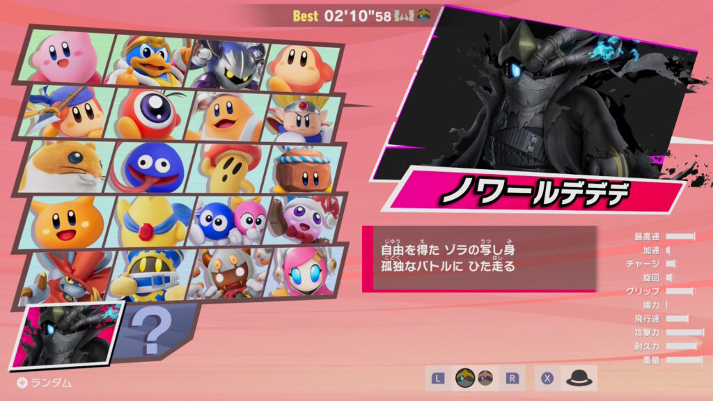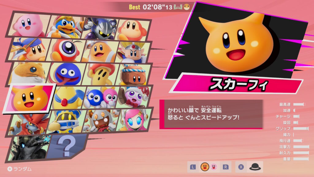 ②カービィで一番速かったマシンで全キャラ走ります。