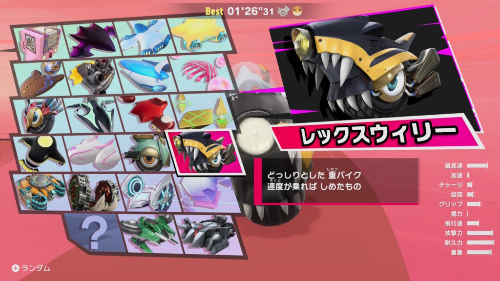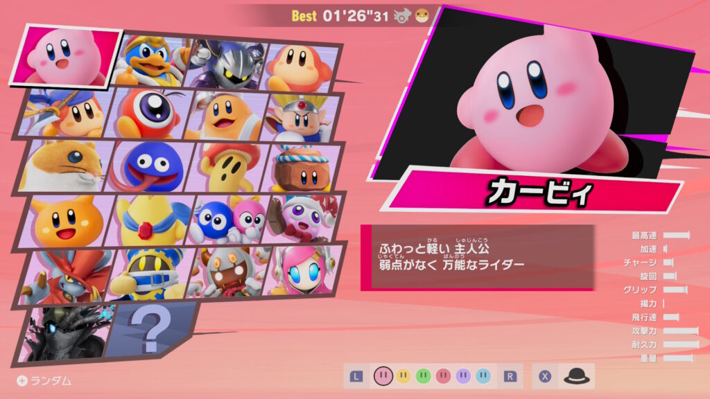 ②カービィで一番速かったマシンで全キャラ走ります。
