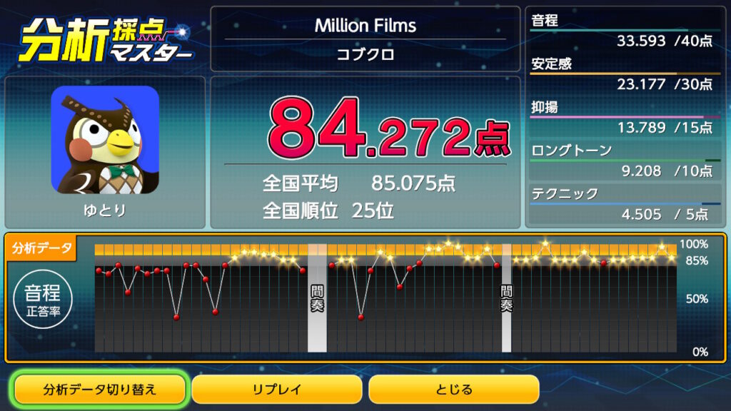 今回、任天堂switchのJOYSOUNDカラオケで採点してみたのは、コブクロの「Million Films」です。