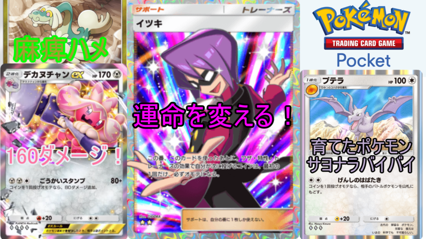 【ずんだもん実況】ワンチャンあるでッキ【ポケポケ】 ゲーム・動画編集 X Facebook はてブ LINE Pinterest コピー 2026.02.15 今回使用したデッキ これが理想のデッキだとは思っていないので、ここからどんどん改良していきます。 ポケモン 名前枚数カヌチャン2ナカヌチャン1デカヌチャンex2プテラ2ジジーロン2合計9 グッズとサポート 名前枚数モンスターボール2ふしぎなアメ2琥珀の化石2オーキド2ヒカリ1イツキ2合計11