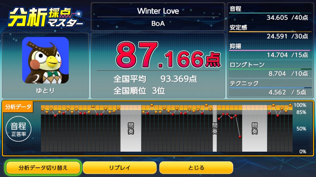 今回、任天堂switchのJOYSOUNDカラオケで採点してみたのは、BoAの「Winter Love」です。
