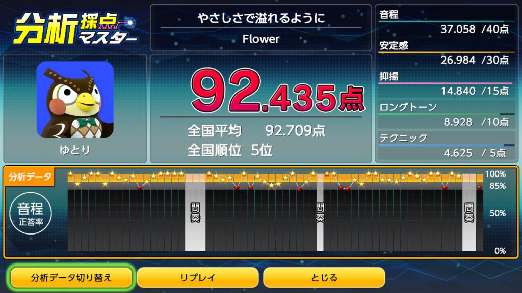 今回、任天堂switchのJOYSOUNDカラオケで採点してみたのは、Flowerの「やさしさで溢れるように」です。
